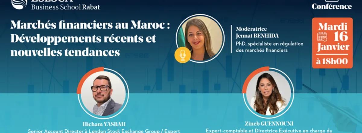 L'ESLSCA Business School Rabat a le plaisir de vous convier à une conférence qui portera sur le thème captivant : « Marchés Financiers au Maroc : Développements récents et nouvelles tendances».