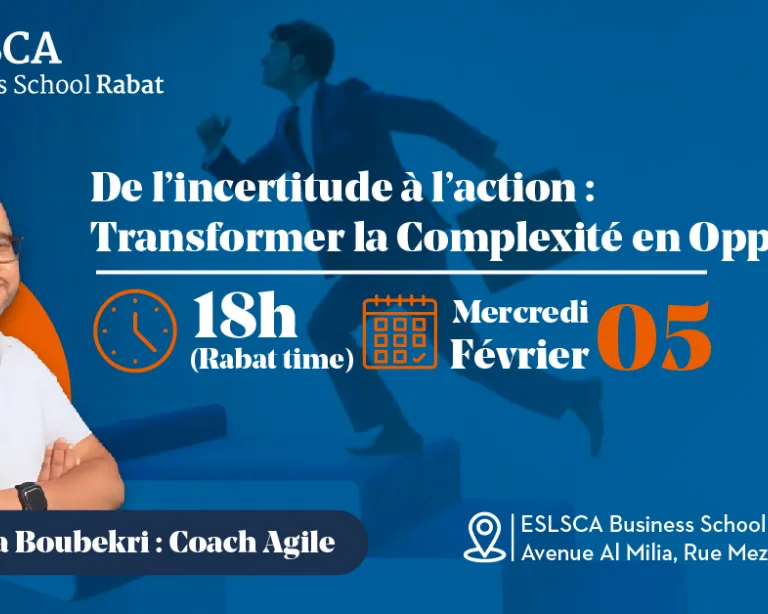 ESLSCA Business School Rabat a le plaisir de vous convier à la Master Class prévue le Mercredi 05 Février 2025 à partir de 18H (Rabat Time) et connaîtra l'intervention de :