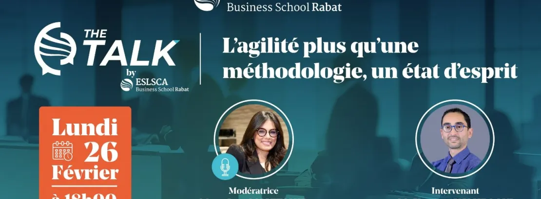 ESLSCA Business School Rabat a le plaisir de vous convier à la session The Talk by ESLSCA qui portera sur le thème captivant : « L’agilité, plus qu'une méthodologie, un état d'esprit »