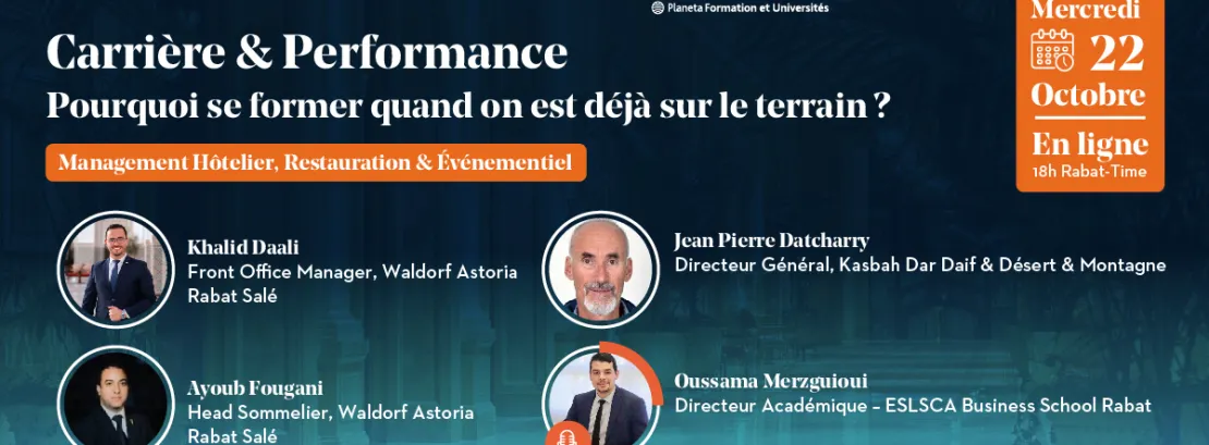 Rejoignez notre webinaire exclusif avec des professionnels du secteur pour un échange sur l’expertise opérationnelle et la montée en compétences, au cœur des métiers de l’hôtellerie, de la restauration et de l’événementiel.