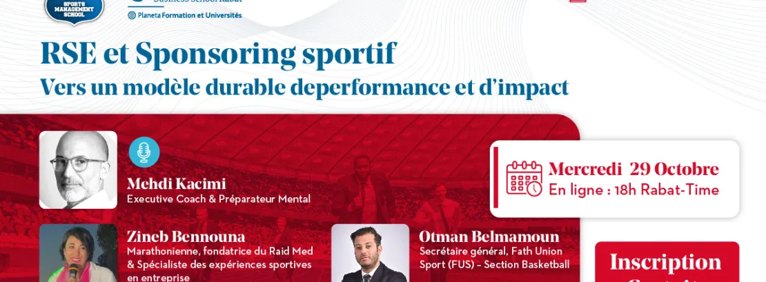 📢 Un événement organisé par SMS Rabat - Sports Management School, Appartenant à Planeta Formation et Universités Maroc.